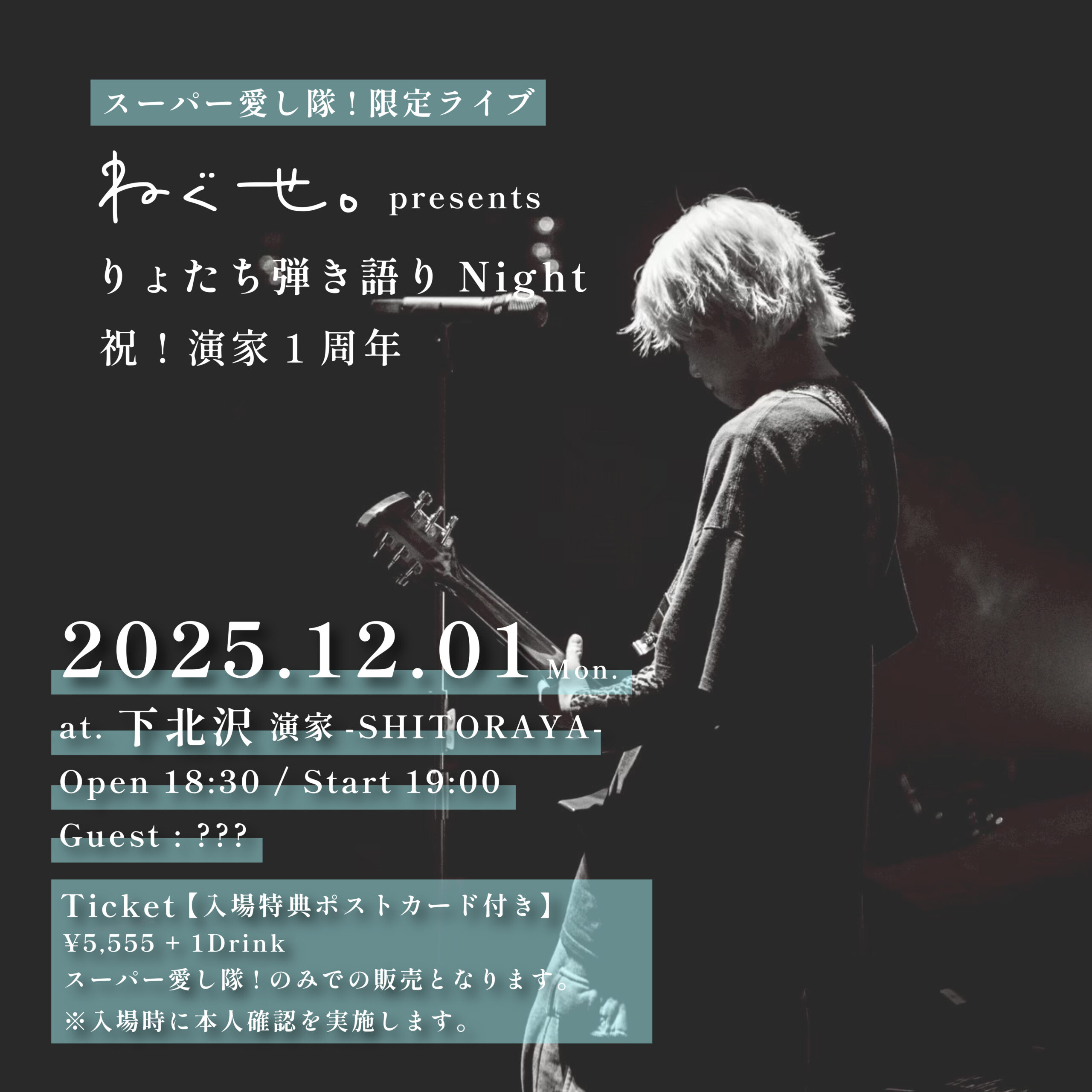 ねぐせ。Presents りょたち 弾き語りNight <祝!演家1周年>の開催が決定いたしました!